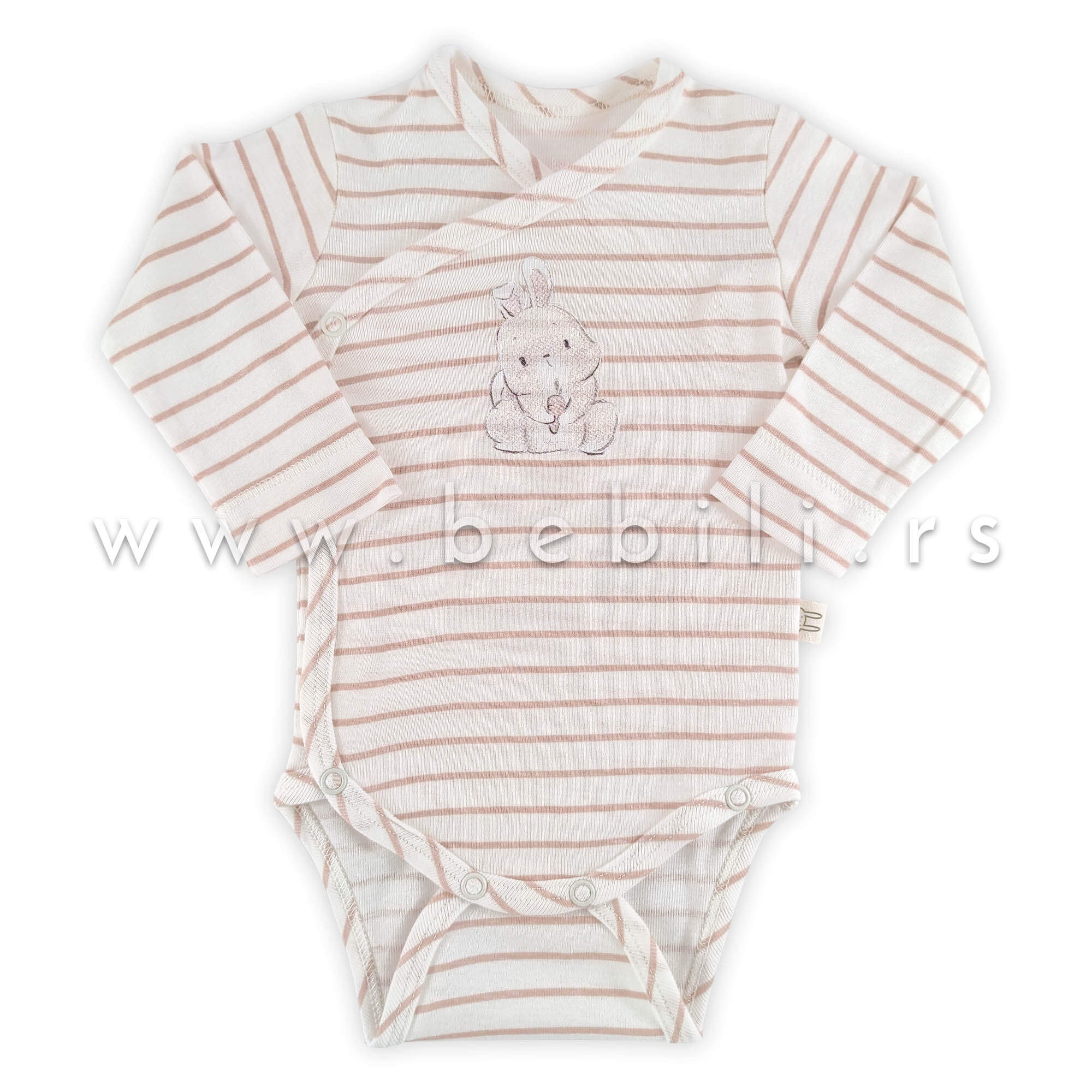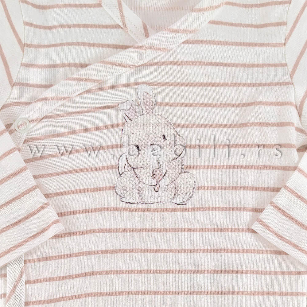 Just Kiddin bebi bodić sa preklopom, dugog rukava. Bele boje sa prugicama i motivom zeca.