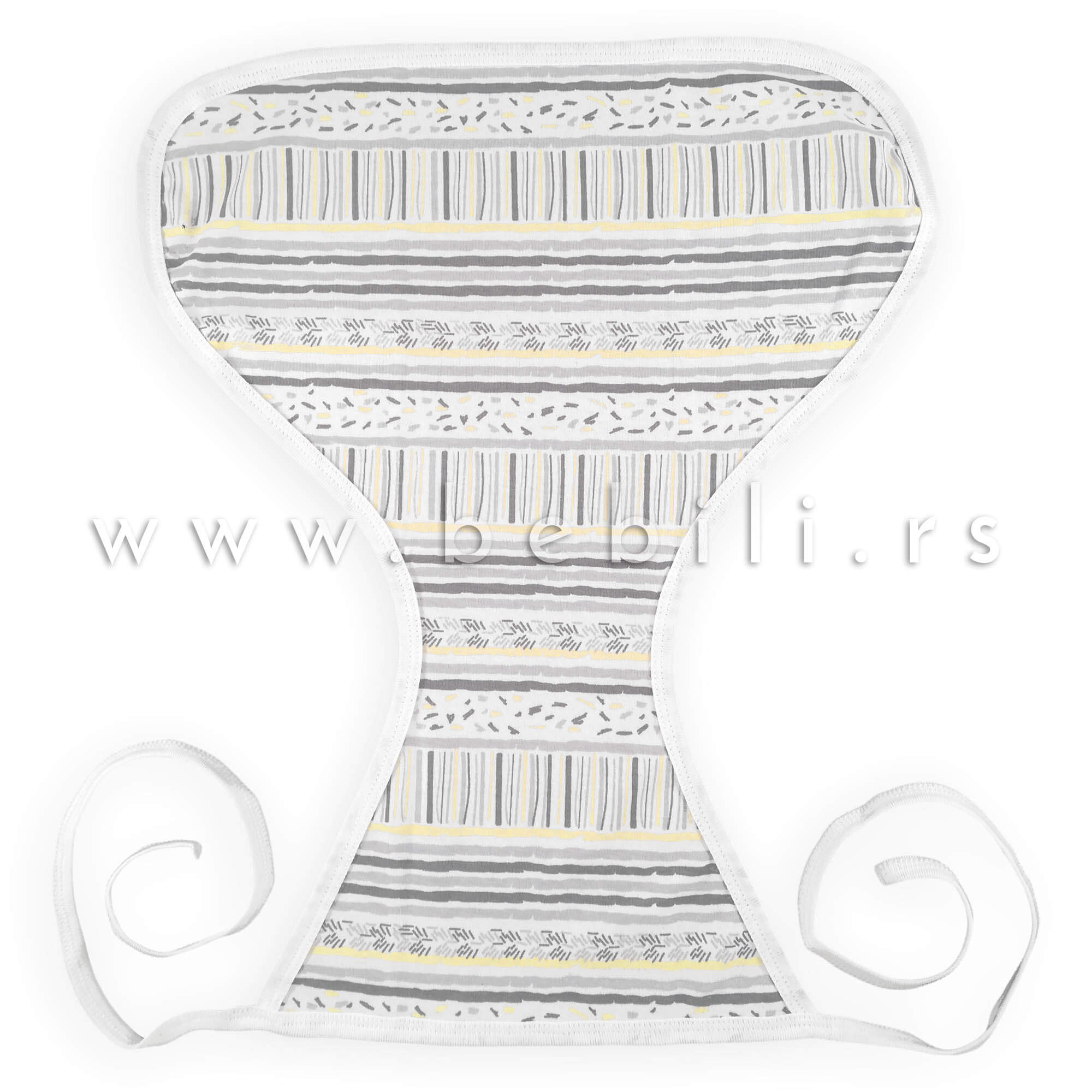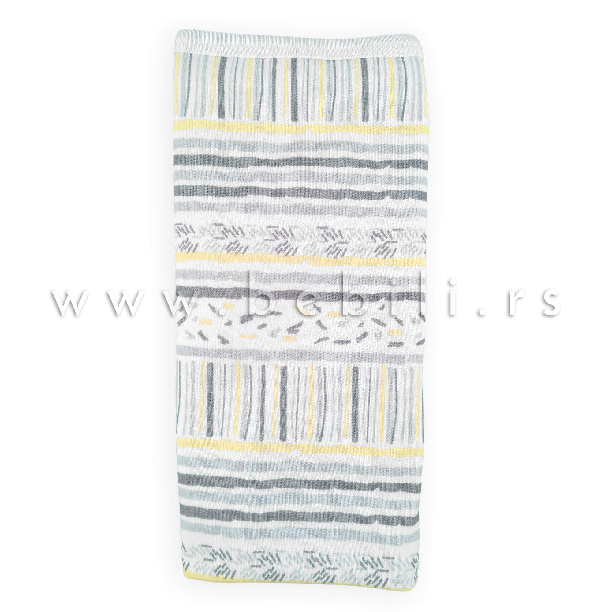 Kvalitetna, švedska pelena za bebe rađena od šarenog materijala sa dezenom linija u sivoj i žutoj boji.