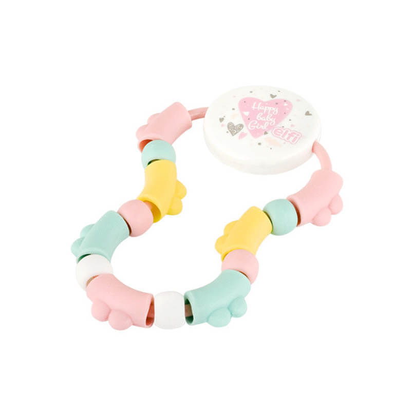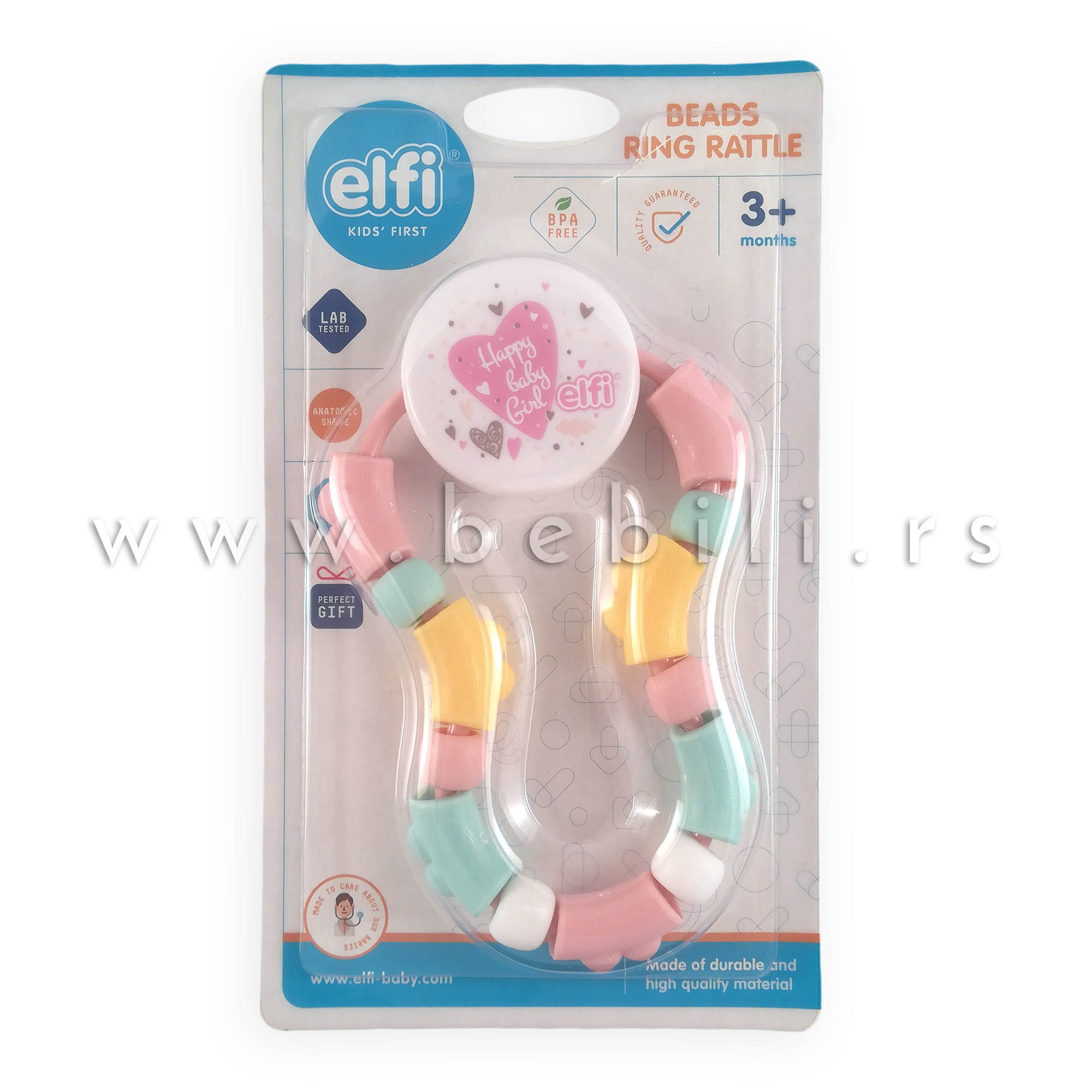Elfi zvečka za bebe napravljena je od svetlih, pastelnih boja. Zvečka podstiče razvoj sposobnosti hvatanja predmeta i interakcije.